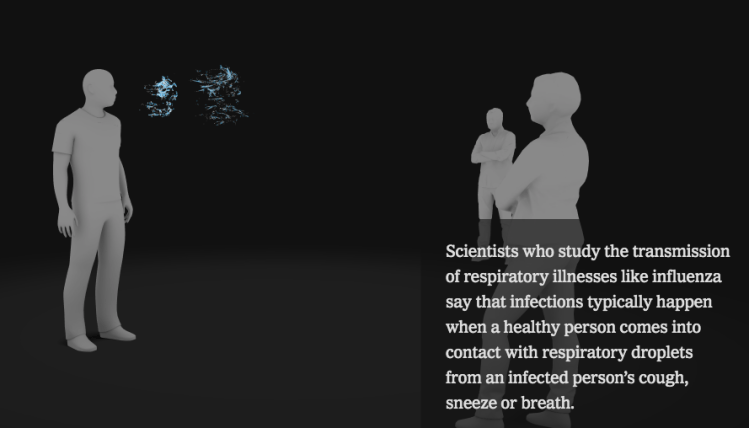 Scheinbar seriös wie in der New York Times oder etwas unseriöser wie in den vielen Aerosol Research Labs, die oft nur ihre Belüftungsanlagen oder gleich ein ganzes Gebäude verkaufen wollen – werden zur Zeit nicht nur die uns schon zum Alltag gewordenen weltweiten Statistiken der Verbreitung präsentiert, sondern eine Mensch zu Mensch-Übertragung, die die Angst vor den gefährlichen Keimen drastisch nährt.