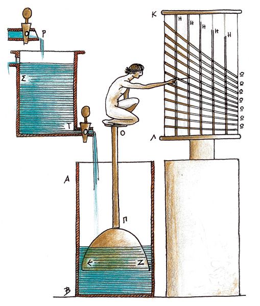 Bis die Wasseruhr erfunden wurde. Am Wasserstand konnte man Zeit unabhängig vom Tageslicht ablesen. Auf einmal war der Mensch in der Lage, den Tag nach seinen eigenen Einheiten einzuteilen, wenn auch noch nicht als Minuten-, sondern eher Stundenbruchteile. Dieses klobige, viel Platz einnehmende Gerät verbreitet sich von Ägypten, Assyrien über China, Griechenland nach ganz Europa. Wie versessen bastelten Ingenieure, Alchemisten und Handwerker jeder Kultur und jeder Epoche an einer Verbesserung ihres Räderwerkes – und vor allem ihrer Größe. Doch erst im Mittelalter wurde die Hemmung erfunden, die auf einmal das Wasser – immer noch Naturelement und damit dementsprechend wiederständig – überflüssig machte. Die Hemmung, die Kaspar nur zu gern in Gang setzt, stoppt die Räder immer im richtigen Takt.