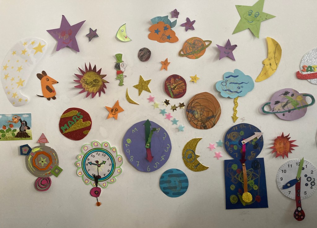 Die Uhr gibt von nun an den Takt vor und nicht mehr der Mensch den Takt der Uhr. Das scheint auch mein kleiner Sohn zu spüren. Uhren sind überall, an unseren Wänden und Armen, auf unseren Nachtischen und Regalen. Es gibt Standuhren und Wanduhren, Kuckucksuhren, Wecker und Armbanduhren. Analoge und digitale. Mal variieren sie als ovale oder eckige Uhr, bei Dalí sogar als „platte Uhr“, wie Kaspar immer sagt, aber selbst die zeigen noch die genaue Zeit an. Es gibt kein Entkommen. Die zwei häufigsten Worte, die man zu kleinen Kindern sagt, sind wohl „Warte“ und „Beeil Dich“. In Kaspars Bilderbuch ist es vor allem der „Trödelbär“, der alle nervt. Das arbeitende Zeitregime, das sich kaum auf die Geschwindigkeit von Kindern einstellen kann, wird also nicht nur in den Uhren deutlich, sondern in vielen Medien und Aussagen der Erwachsenen, die Kaspar umgeben.