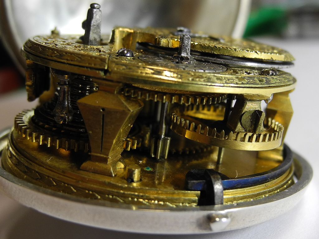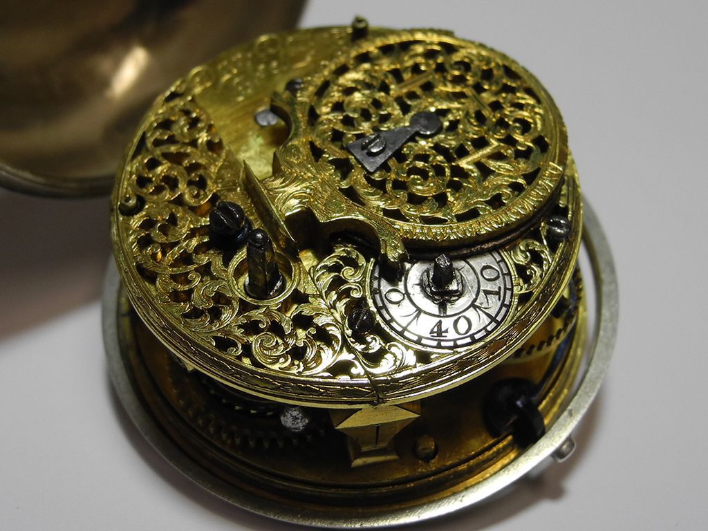 Im Englischen heißt die Hemmung „escapement“, was ich sehr sprechend finde: Während die Deutschen ihr Räderwerk gehemmt, also fast aufgehalten sehen, verstehen Engländer, aber auch Franzosen den kleinen stoppenden und gleichzeitig in Gang setzenden Anker als Möglichkeit der Flucht. Eine Flucht nach vorne, wenn man so will; hat die Hemmung doch nicht nur Sonne und Mond, sondern auch endlich Wasser und Licht überflüssig gemacht. Statt riesiger Wasserkanister baute man nun kleine mechanische Uhren, die sogar Minuten und Sekunden anzeigen können.